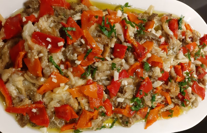 Αγιορείτικη μελιτζανοσαλάτα με πιπεριές Φλωρίνης