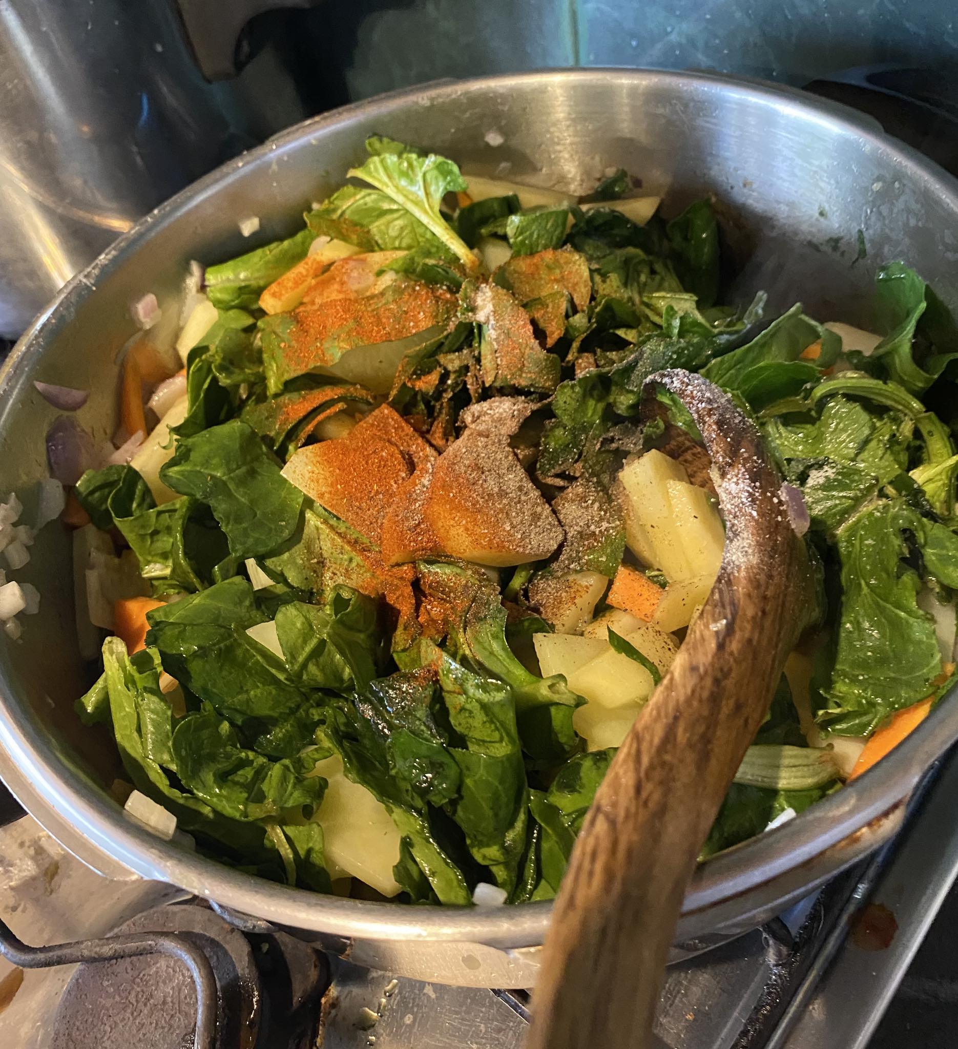 - Αμέσως μετά, πρόσθεσα το σπανάκι και τον κύβο, αν βάλετε, καθώς και την πάπρικα και το πιπέρι
