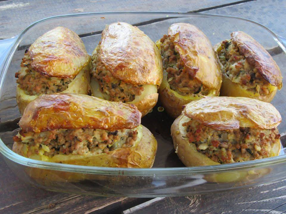 • Σκεπάστε με τα καπάκια τους τις πατάτες και ψήστε σε βουτυρωμένο ταψί, στους 220 βαθμούς μέχρι να γίνουν οι πατάτες και να ροδίσουν καλά