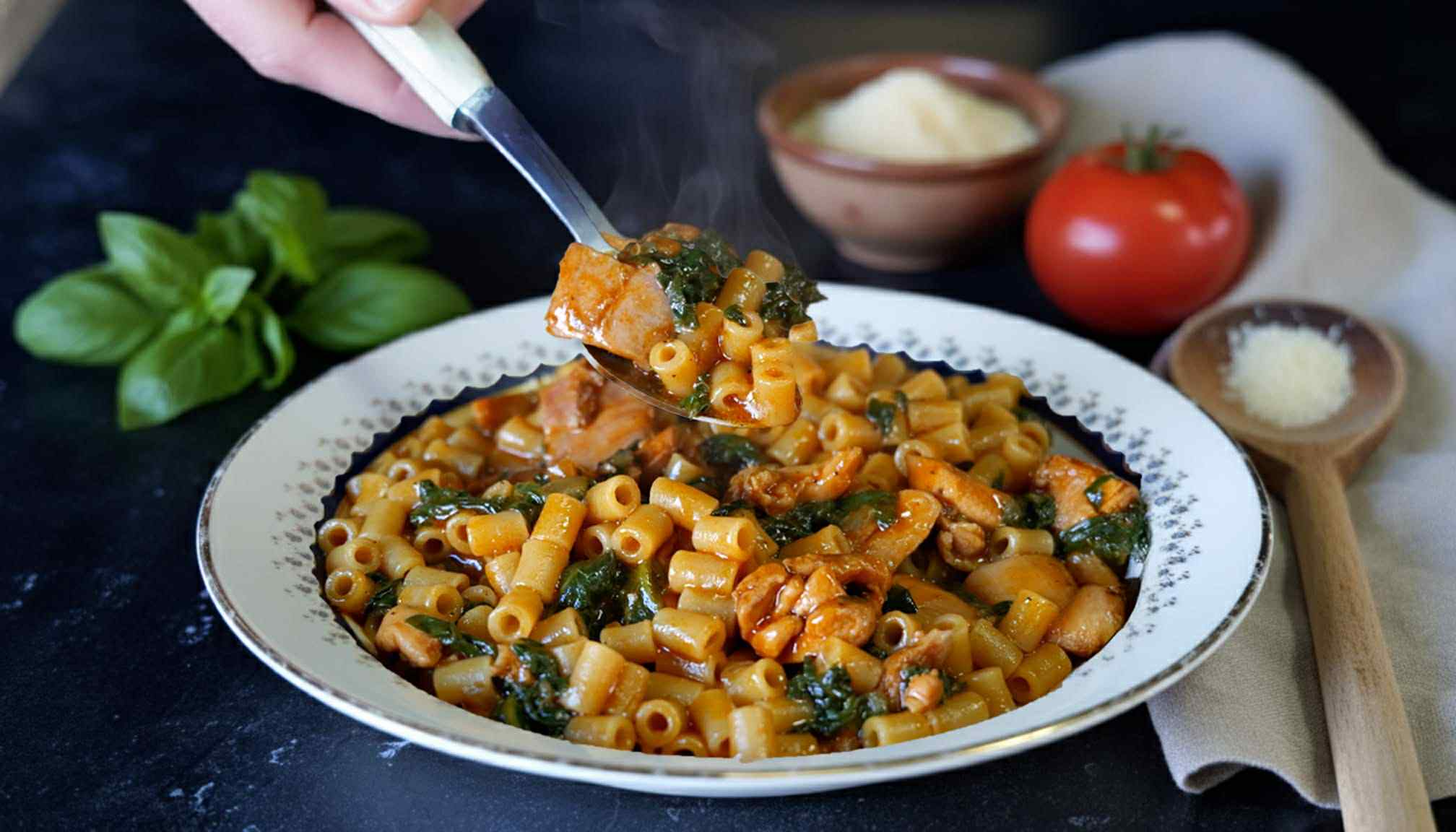 Σου δείχνω βήμα-βήμα πώς να ετοιμάσεις αυτό το πεντανόστιμο κοφτό μακαρόνι με σπανάκι και ζουμερό κοτόπουλο. Είναι η τέλεια συνταγή, για όταν απλά δεν έχεις διάθεση για πολύπλοκα μαγειρέματα, αλλά θέλεις  σούπερ γευστικό πιάτο.
