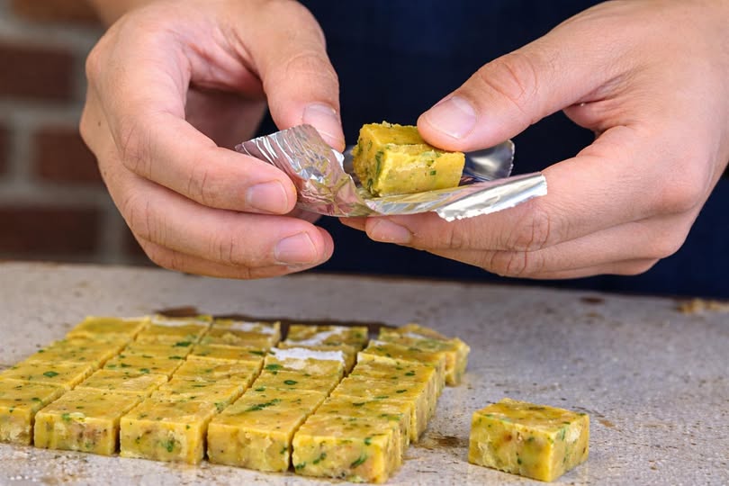 - Όταν χρειαστούμε κύβο λαχανικών, βγάζουμε από την κατάψυξη και βάζουμε στο φαγητό