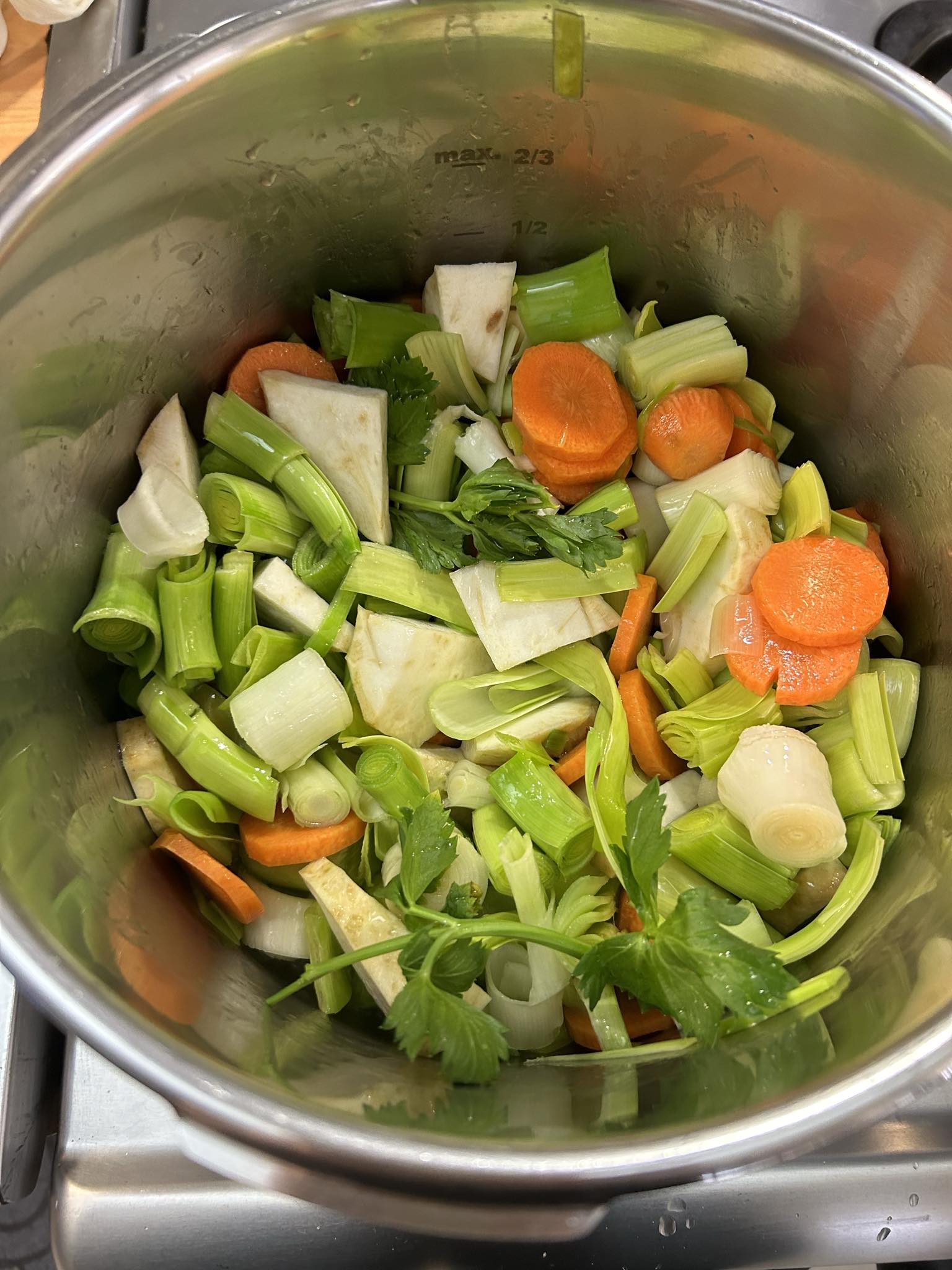 • Προσθέτουμε τα πράσα, κομμένα σε χοντρές ροδέλες